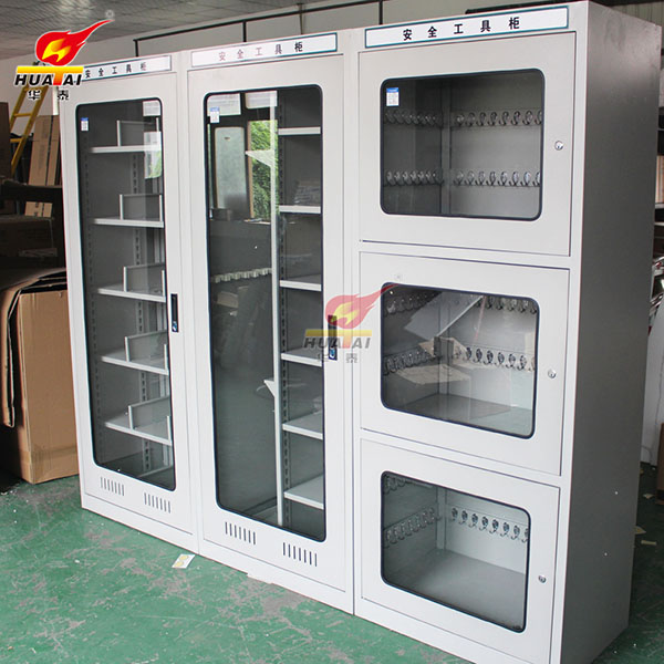 電力工具柜在國內電力行業中,廣泛使用絕緣工具進行帶電作業或操作。受潮后的絕緣工具絕緣性能下降,嚴格危及檢修人員的生命安全。現有的措施是采用木 質或鐵質的柜體或絕緣工具庫存房進行絕緣工具的存放或保管。木質、鐵質工具柜都不具備長期恒定的防潮作用,極易受潮,但這種庫房投資大,能耗高,干燥過程 緩慢,特別是絕緣工具少的單位,也沒有必要建立絕緣工具庫房。