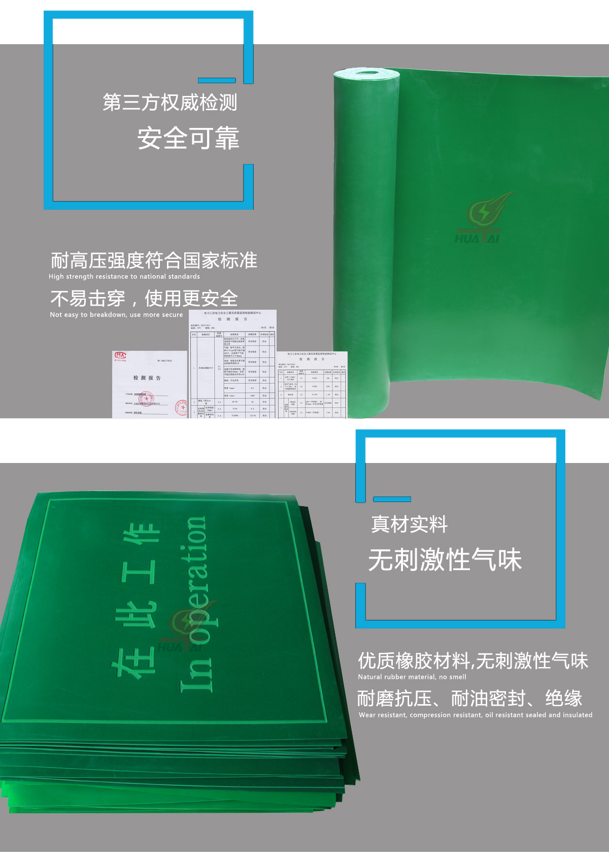 華泰電力絕緣膠墊無異味,色澤好,比重及耐壓等級完全符合國家標準,供貨同時提供正規檢測報告、合格證等證明材料,絕緣性能良好,無氣泡,無凹坑,表面光滑整潔干凈。華泰廠家鄭重承諾到貨后90天內所提供產品出現質量問題無條件退換貨。購買絕緣膠墊華泰電力!