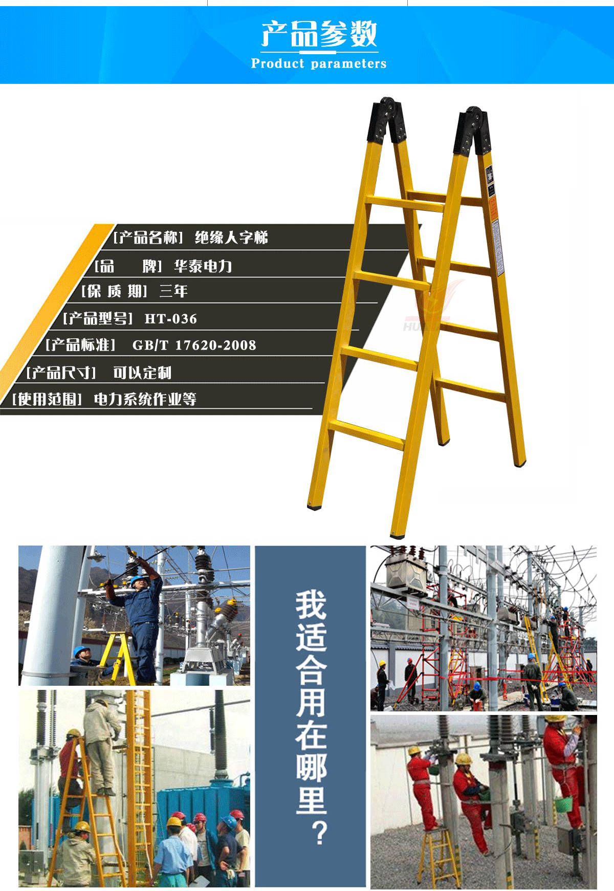 用了絕緣漆進行處理。梯撐、梯腳防滑設計不易疲勞,梯各部件外形無尖銳棱角,安全程度高,絕緣性能強;吸水力低,耐腐蝕。