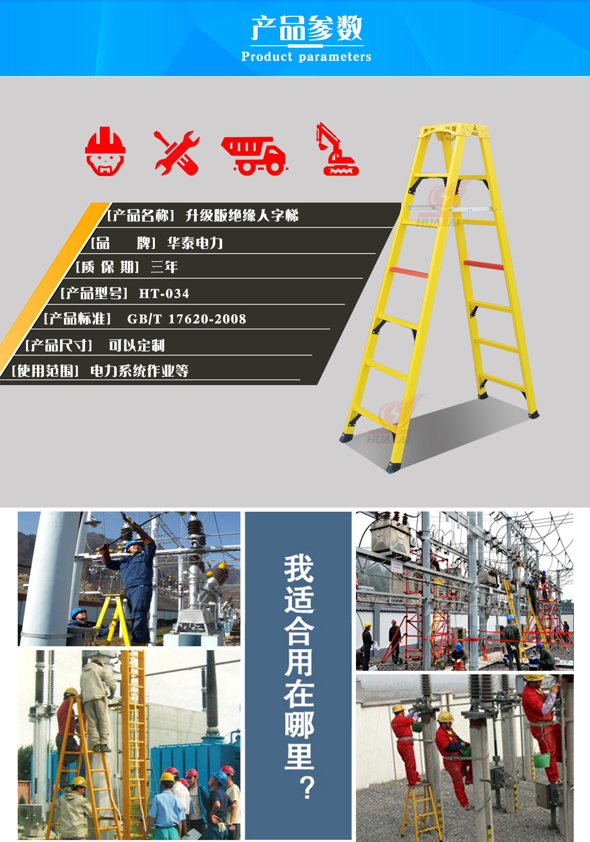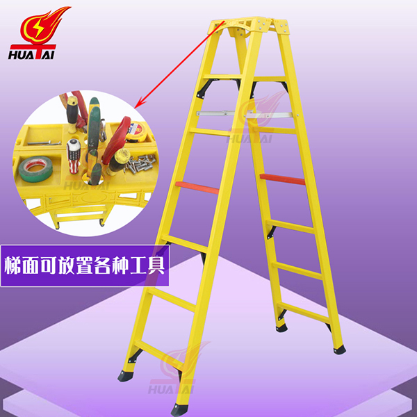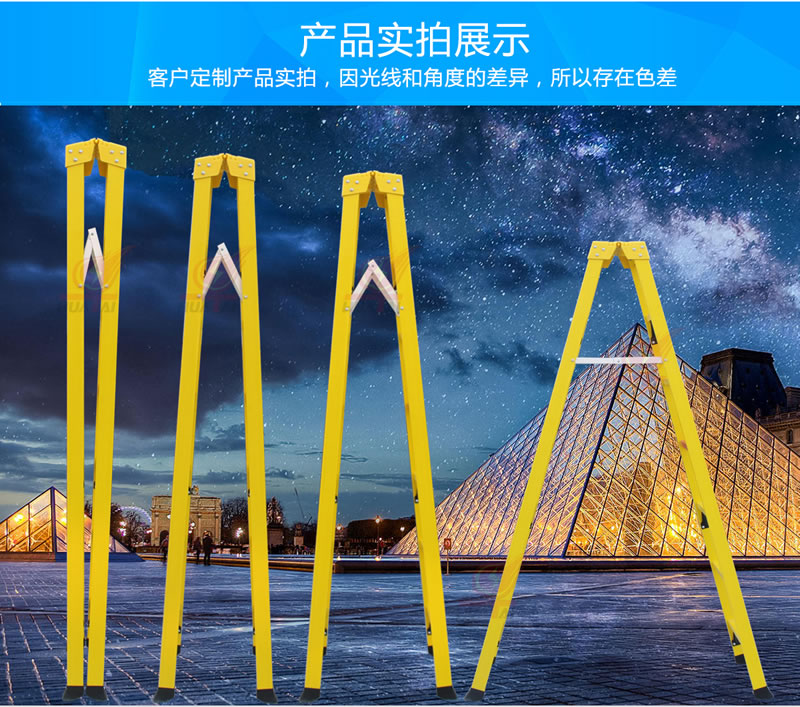 升級版玻璃鋼絕緣人字梯名稱由來:用于在平面上方空間(如屋頂)進行裝修之類工作的一類登高工具,因其使用時,前后的梯桿及地面構成一個等腰三角形,看起來像一個""字,因而把它形象的稱為"人字梯"
