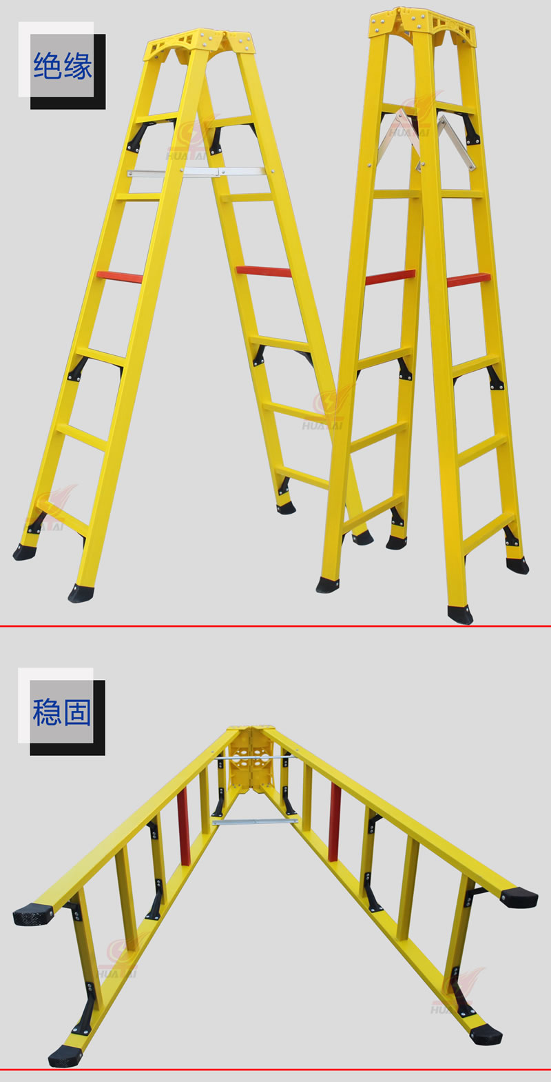 升級版玻璃鋼絕緣人字梯材質: 由不飽和樹脂和玻璃纖維混合而成的絕緣玻璃鋼