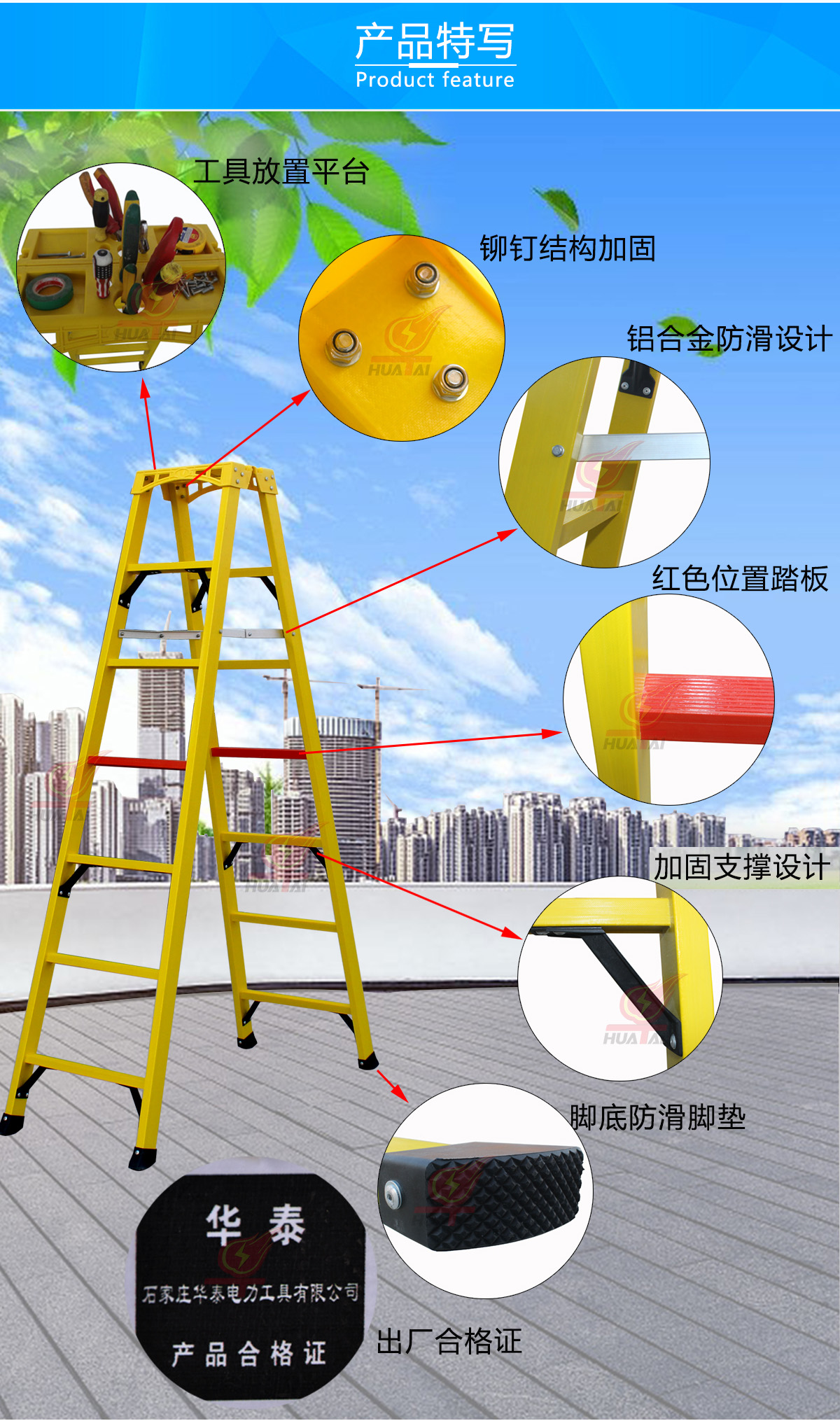 (1)升級版玻璃鋼絕緣人字梯不導電,外觀新穎,美觀大方