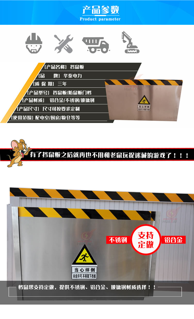 1.擋鼠板是由特質(zhì)鋁合金材質(zhì)制作而成,擋鼠板表面經(jīng)過(guò)防腐處理。