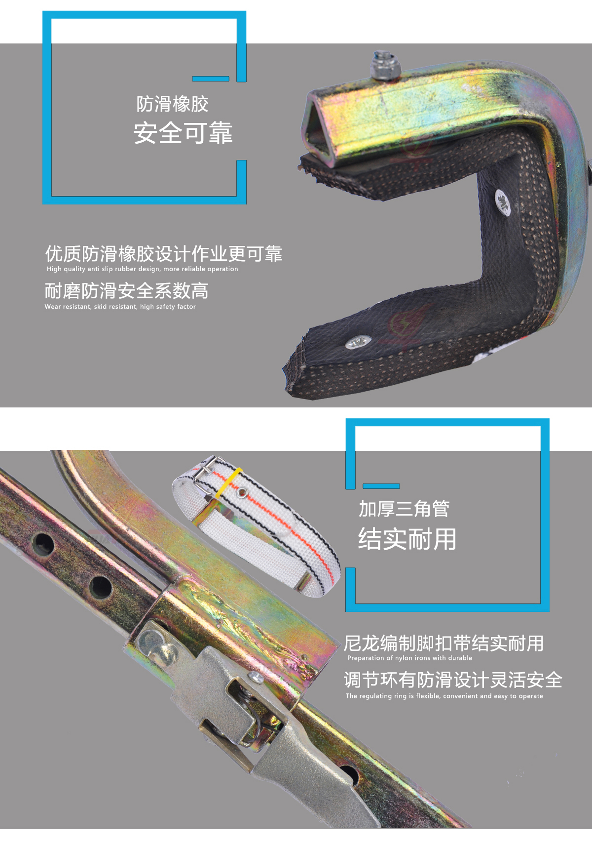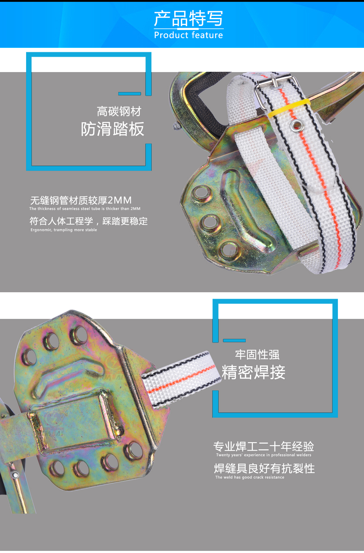 可調(diào)節(jié)卡套環(huán):靈活度高,操作方便簡單精密焊接堅(jiān)固耐用,是電工爬不同規(guī)格的桿理想工具
