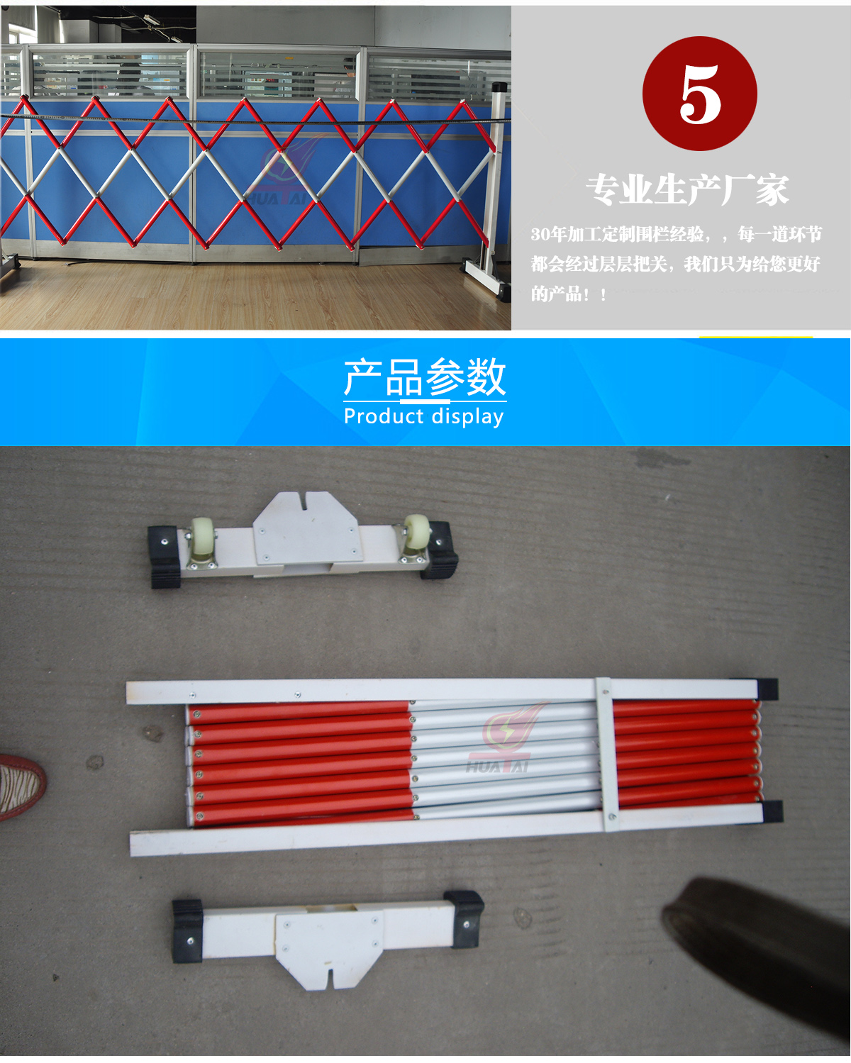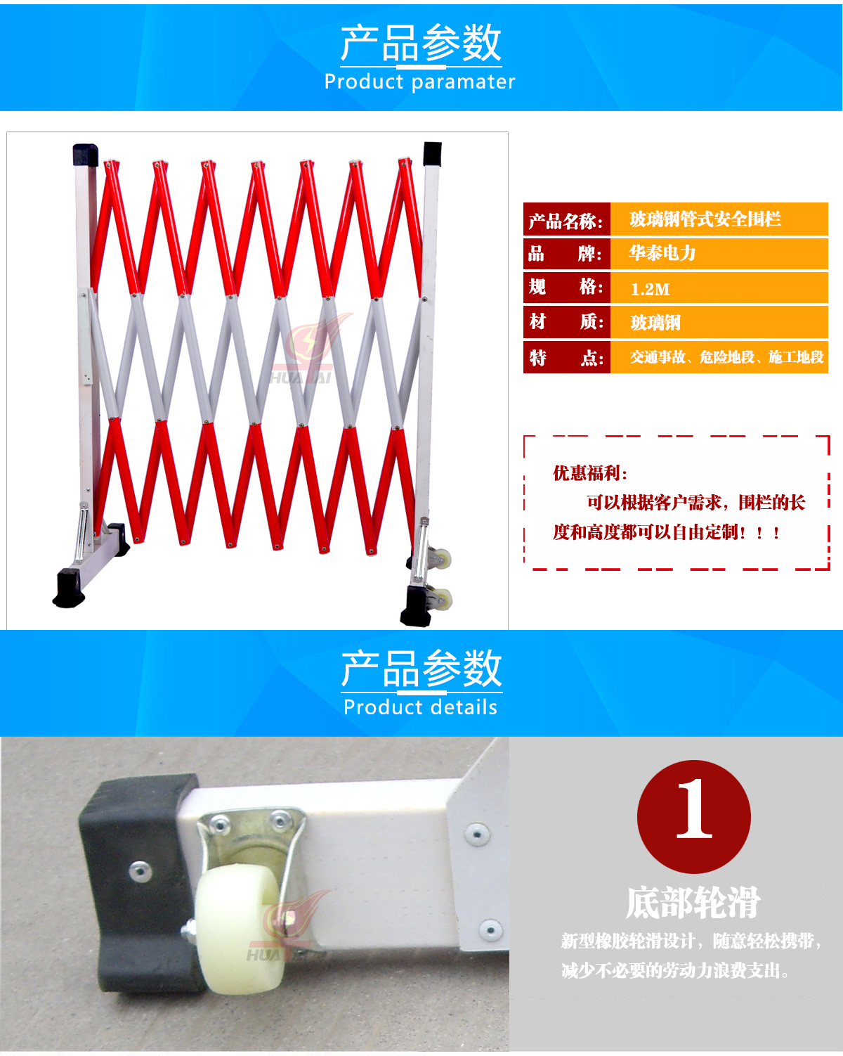 安全圍欄高度為1.2米,伸開長度為2.5米。以其新穎獨特的設計,打破了傳統圍欄的陳舊形式,賦予了圍欄先進,實用,多姿的