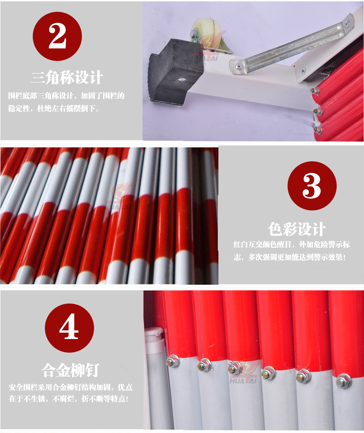特點:伸縮自如,紅白相間,色彩鮮明,絕緣性好,操作簡單,美觀規范,實用性強,強度大。