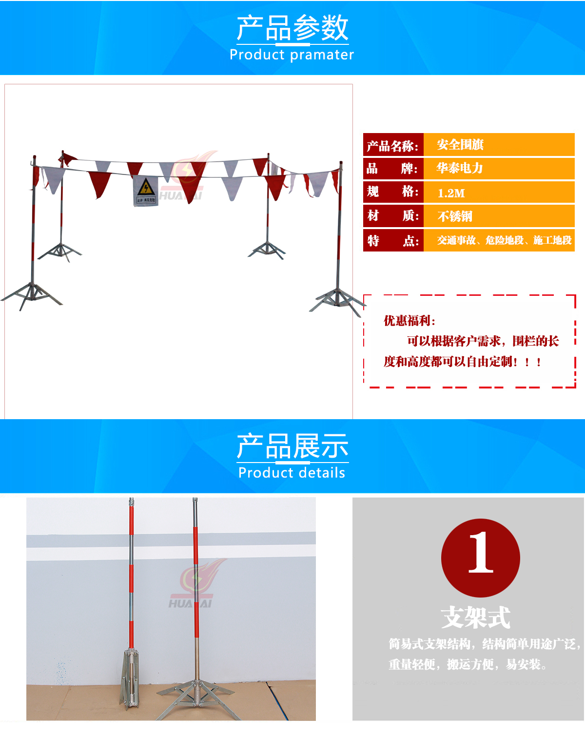 該彩旗可用于道路施工.工程建設(shè)等隔離醒目標(biāo)志.并且可與路錐警示柱等一起使用.進(jìn)行場合之間的拉圍.可用于臨時(shí)性活動(dòng)場所提醒行人注意隔離防護(hù).保證安全