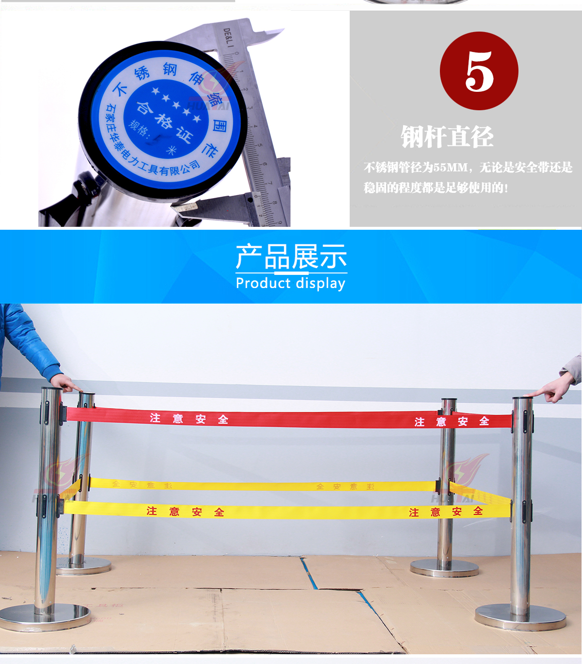 安全警示帶特點:兩條警示帶上有“止步,高壓危險”標志,可根據客戶要求印字;警示帶可以自 由拉出,,并可自動收回。收縮自如,使用方便。
