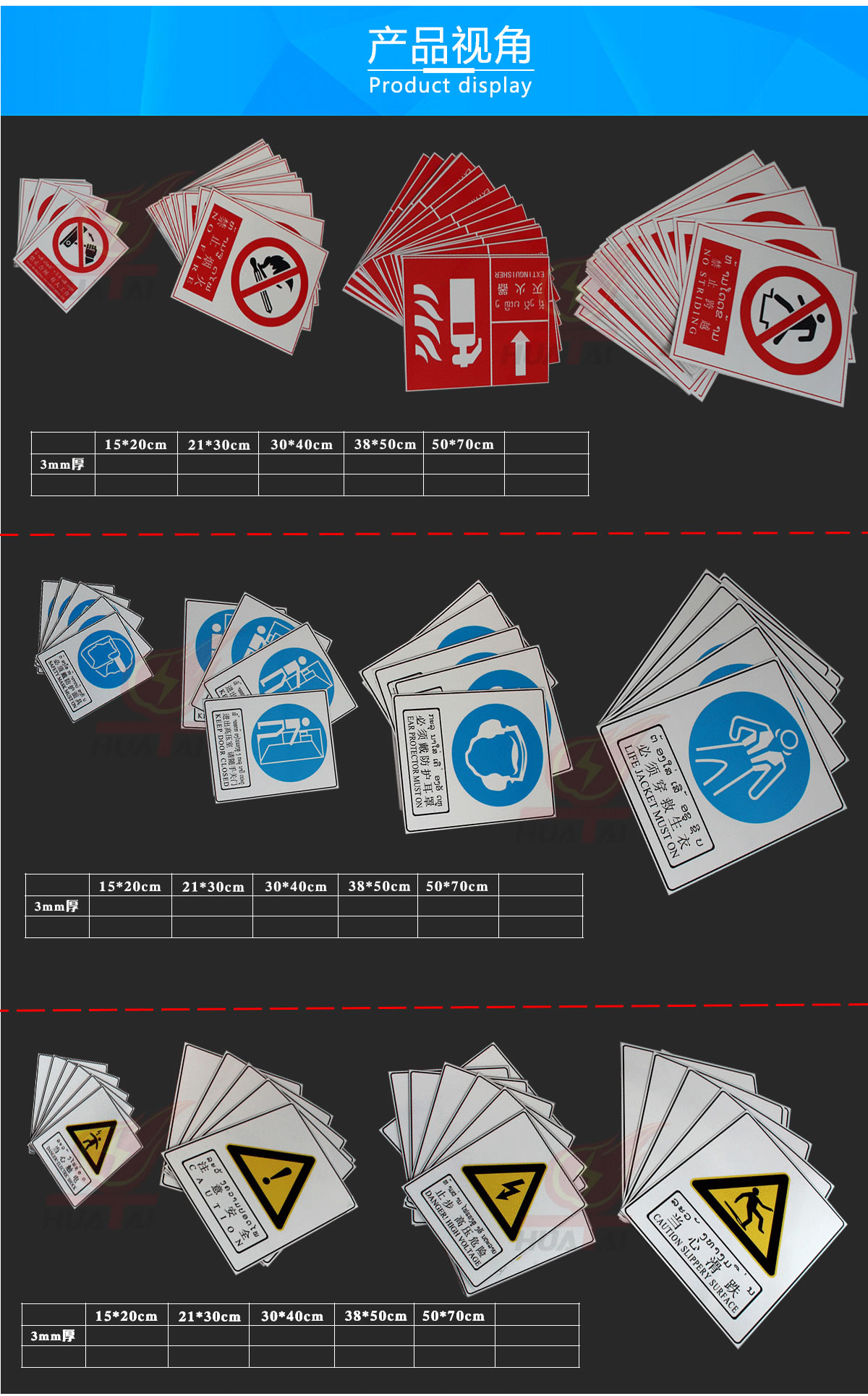 輔助標志附加在主要標志上起補充說明作用,可分為表示車輛種類、表示時間、表示區間范圍和表示距離等四種。輔助類PVC材質安全警示牌不能單獨設立