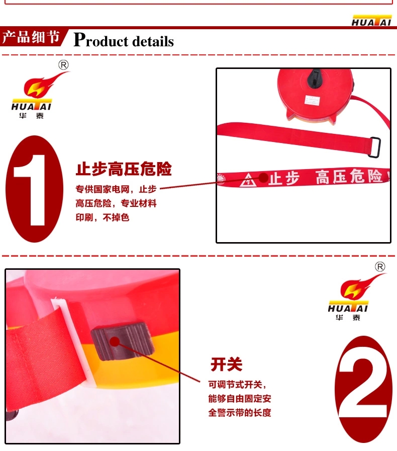 5、手提式警示帶用途:主要用于公路,鐵路,電路,通信,礦井等施工現(xiàn)場(chǎng)的安全防護(hù)及公安,消防,衛(wèi)生,交通等突發(fā)性時(shí)間和現(xiàn)場(chǎng)警戒,隔離。